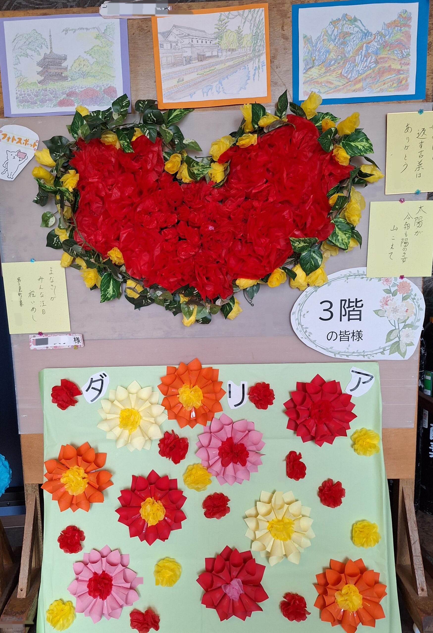 各フロアで取り組んだ共同作品や、ご利用者様の個人の作品を展示し、多くの方に楽しんでいただきました。